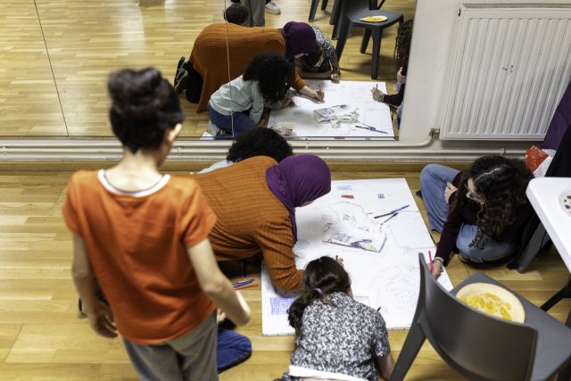 Un moment de discussion autour du projet Central Park de Villiers et de partage entre villiérain.e.s préoccupés par l’avenir de la ville.